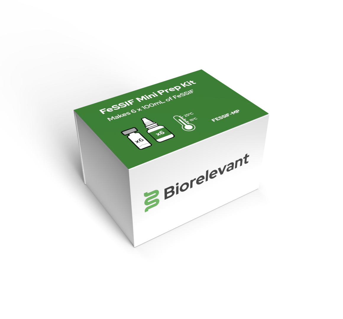 Each kit contains 6 mini bottles of FeSSIF Buffer Concentrate and 6 vials of 3F Powder to make 6 x 100mL of medium